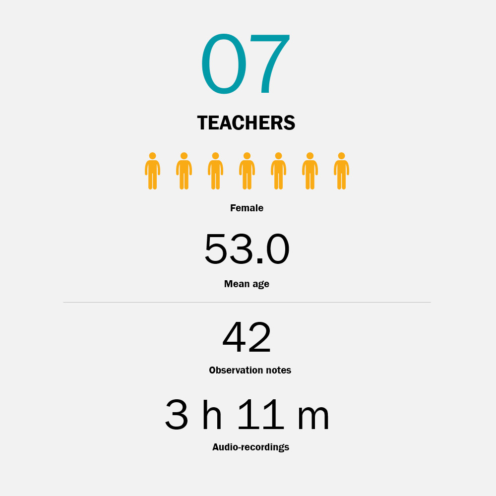 Tests, divided into three sessions, were administered to 7 teachers, in which two types of data were collected: (1) observation notes on users’ performance and usability issues and (2) audio-recordings of users’ “think aloud” and interviews.