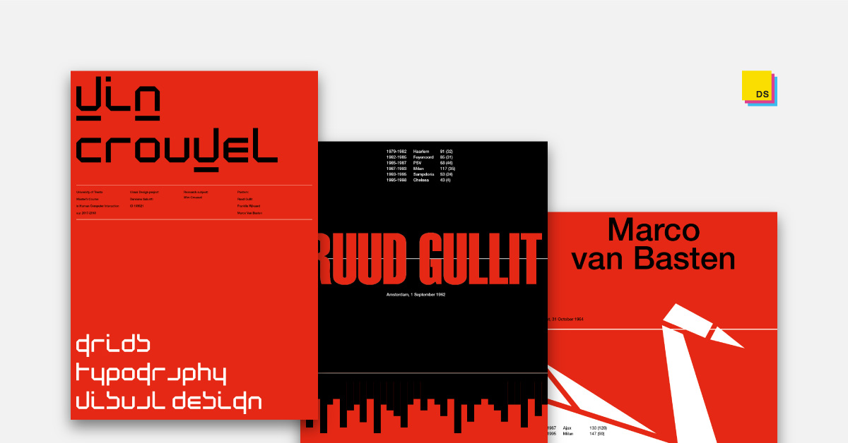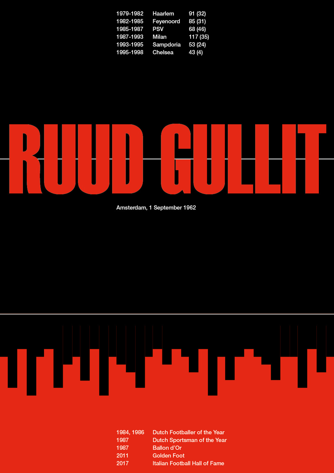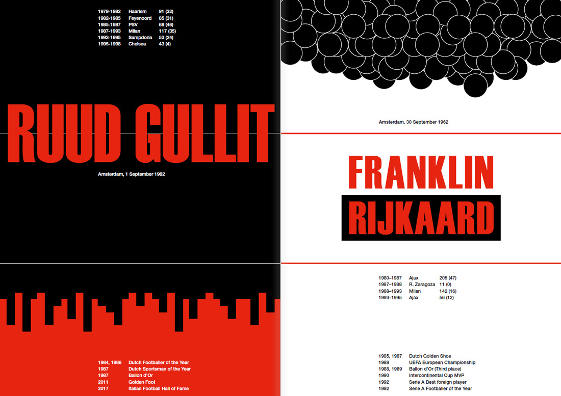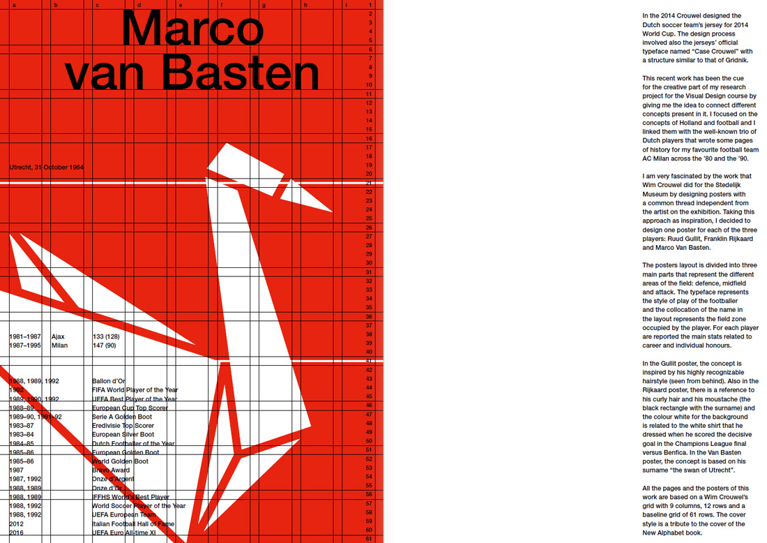 On the occasion of the World Cup 2014, Crouwel designed the Dutch football team’s jersey and the jerseys’ official typeface named “Case Crouwel”. This work has been the cue for my visual design project in which I focused on the “Dutch trio” (Gullit, Rijkaard, and Van Basten) that wrote some pages of history for my favourite football team AC Milan across the ’80 and the ’90.