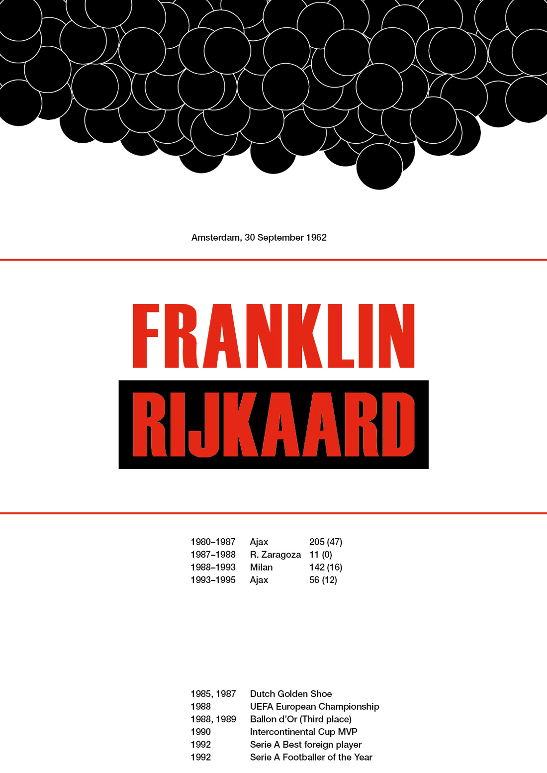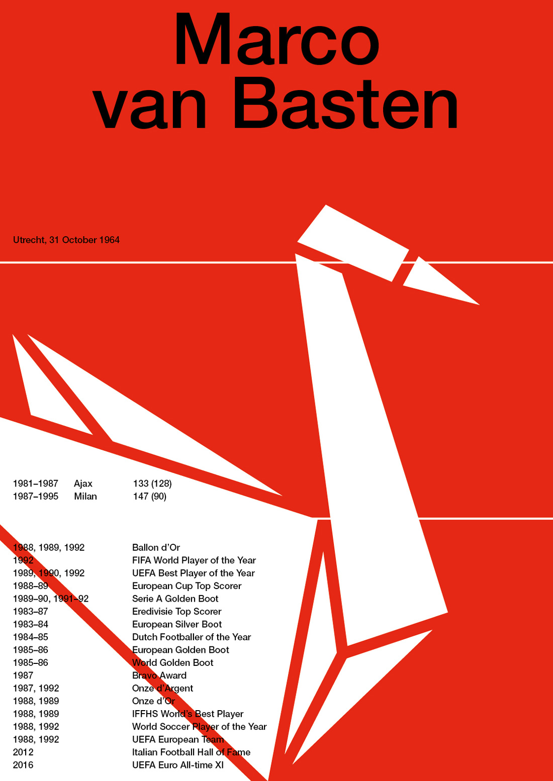 I am very fascinated by the work that Crouwel did for the Stedelijk Museum by designing posters with a common thread, independent from the artist on the exhibition, by creating one grid and a set of rules for all the posters. Taking this approach as inspiration, I designed one poster for each player.